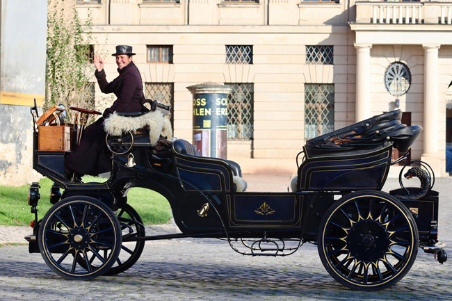 Meine E-Kutsche »Erna« ist einfach gesagt eine herkömmliche Kutsche mit einem Elektromotor, so wie die ersten Autos um 1900 etwa gestartet sind.